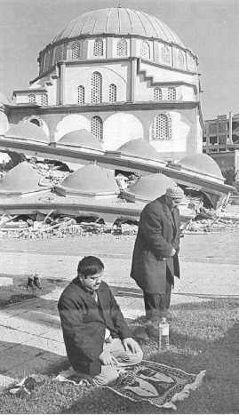 Hemen dini siyasete alet eden yobaz islamcılar ortaya çıktılar.. Bu depremin Allah'tan (varsa eğer) gelen bir ceza olduğunu iddia ettiler.. Hatta bu konuda bir kitap bile bastırıp dağıttılar. (Sonra da kendilerine göre Allah'tan ceza görenlere güya yardımcı olmak için kendi partilerinin ve kuruluşlarının reklamını yaparak bir "yardım kampanyası" açtılar.. Bu suretle, Allah'ın-varsa eğer- ceza verdiklerine yardımcı olarak Allah'a-varsa eğer- karşı gelmiş olmuyorlar mı?)
